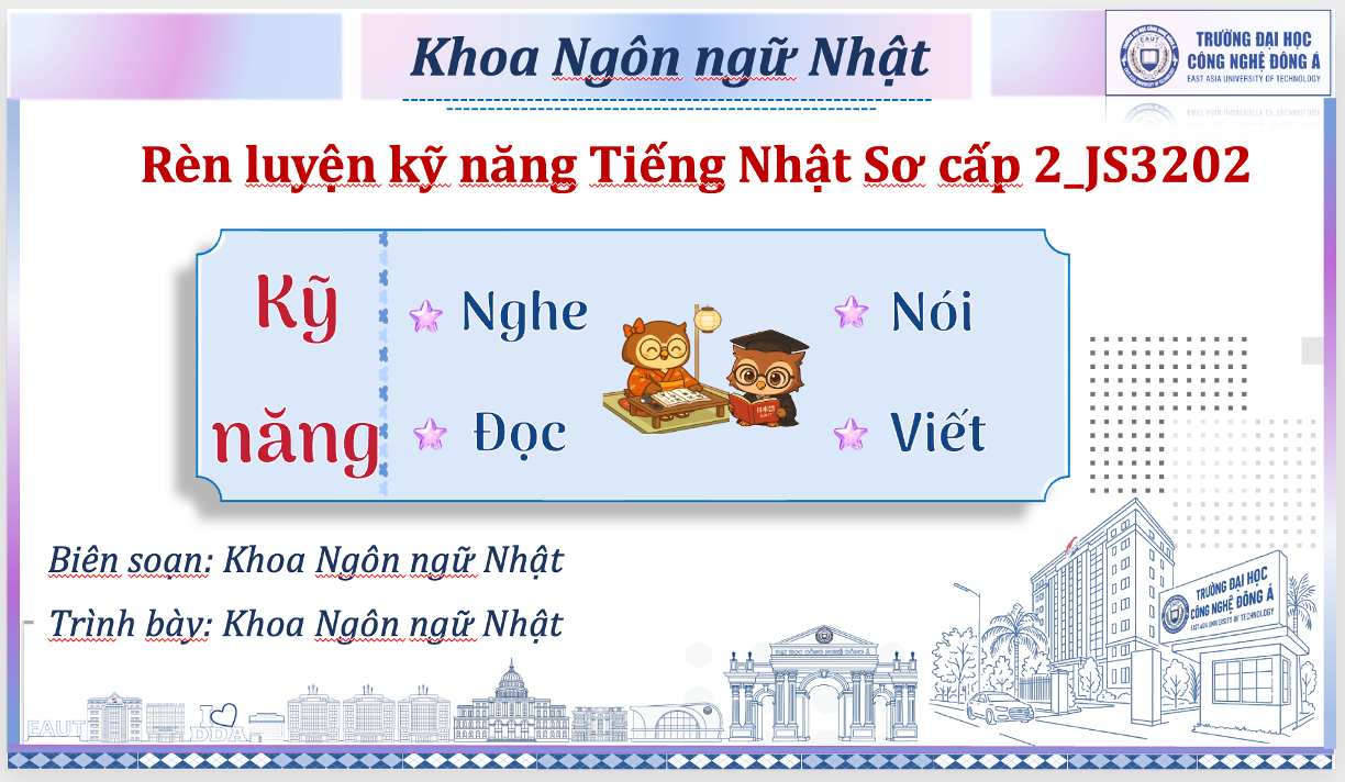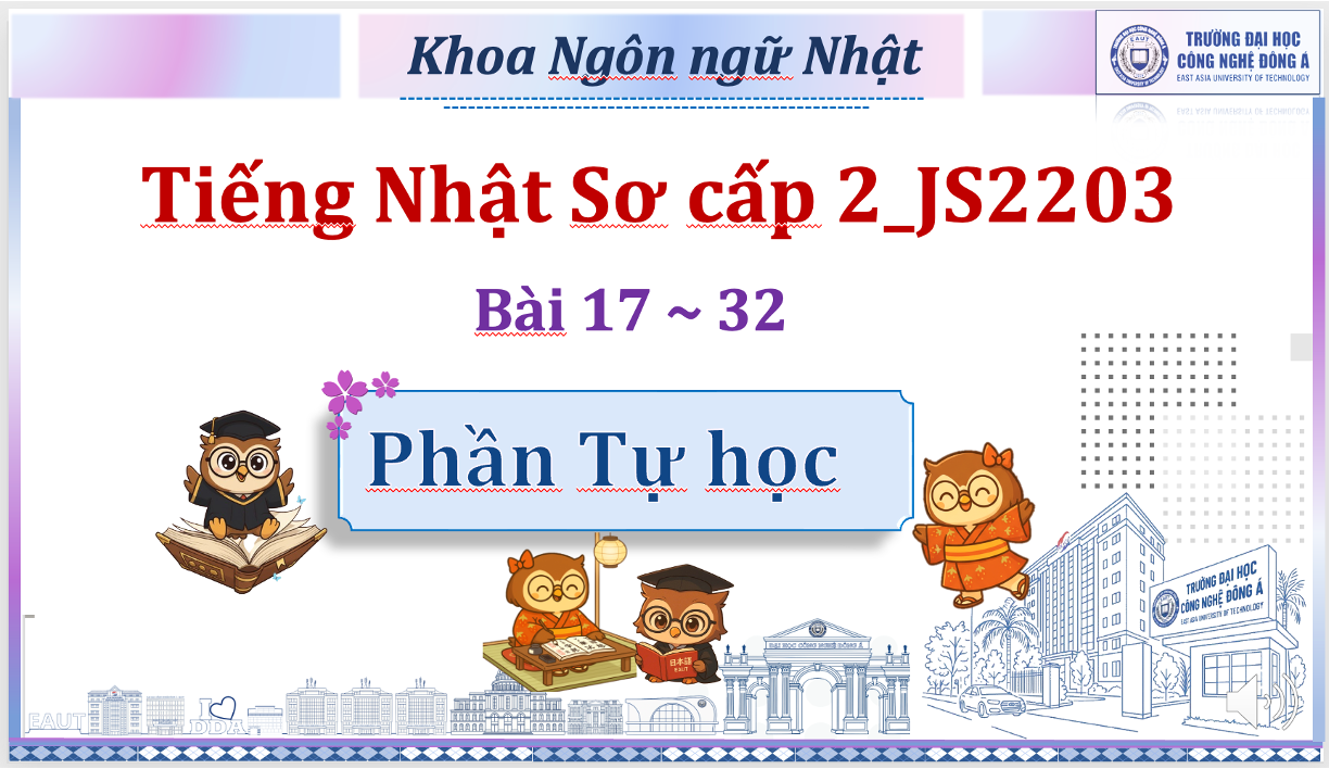Tiếng Nhật Sơ cấp 2 là môn học bắt buộc thuộc khối kiến thức cơ sở ngành trong chương trình đào tạo cử nhân Ngôn Ngữ Nhật. Học phần tập trung cung cấp và hệ thống hóa kiến thức ngôn ngữ nền tảng ở trình độ sơ cấp, bao gồm chữ Hán, từ vựng, ngữ pháp và mẫu câu cơ bản giúp sinh viên phát triển khả năng nghe hiểu, đọc hiểu, nói và viết những đoạn hội thoại, đoạn văn ngắn về các chủ đề quen thuộc trong đời sống với tốc độ nói chậm và rõ ràng. Thông qua học phần này, sinh viên sẽ phát triển khả năng sử dụng ngôn ngữ chính xác để truyền đạt nội dung trong các tình huống giao tiếp thường gặp; để thiết lập quan hệ xã hội cơ bản như chào hỏi, trò chuyện, liên lạc qua điện thoại với người quen hoặc giao tiếp trong bối cảnh trang trọng tại trường học, công sở; để tiếp nhận và xử lý thông tin đơn giản như thông báo, thư từ, tin nhắn, bản tin trên phương tiện truyền thông...trong bối cảnh đời sống hàng ngày. Sau khi hoàn thành học phần, sinh viên đạt được trình độ kiến thức tiệm cận A2 (CEFR), tạo tiền đề cho việc tiếp thu các kiến thức nâng cao hơn trong học phần Tiếng Nhật Sơ cấp 3. Ngoài ra, sinh viên được rèn luyện tư duy phản biện, kỹ năng tự học, nâng cao năng lực học tập suốt đời và thể hiện ý thức, thái độ cầu thị, trung thực, nghiêm túc, thực hiện đúng các nội quy, quy chế, từ đó hình thành tác phong làm việc chuyên nghiệp.