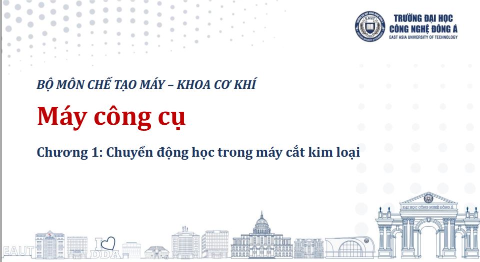 Học phần ME3262 Máy công cụ là học phần thuộc khối kiến thức chuyên ngành, ngành kỹ thuật cơ khí, chuyên ngành Công nghệ chế tạo máy. Học phần giúp cho sinh viên hiểu rõ vai trò của Máy công cụ trong ngành cơ khí. Trình bày những các khái niệm cơ bản về tạo hình bề mặt và cấu trúc động học máy cắt kim loại; Các xích truyền động, Sơ đồ động của máy và các nhóm truyền động cơ khí thực hiện biến đổi tốc độ có cấp và vô cấp; Các xích truyền động đặc trưng, các cơ cấu đặc biệt và phương pháp tính toán điều chỉnh các máy cắt kim loại tiêu biểu như: tiện, phay, mài, máy gia công răng.