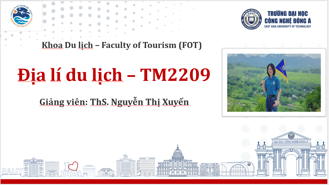 Học phần Địa lí du lịch thuộc khối kiến thức cơ sở ngành của chương trình đào tạo cử nhân Quản trị dịch vụ, du lịch và lữ hành. Học phần giúp sinh viên hiểu rõ kiến thức tổng quan về địa lí du lịch; Tổ chức không gian lãnh thổ du lịch Việt Nam theo vùng với các đặc điểm tài nguyên du lịch tự nhiên, tài nguyên du lịch văn hóa, điều kiện về cơ sở hạ tầng, cơ sở vật chất kỹ thuật phục vụ du lịch. Định hướng phát triển các sản phẩm du lịch đặc trưng của vùng gắn với hệ thống khu, điểm, tuyến du lịch. Sau khi học xong, sinh viên áp dụng được kiến thức về Địa lí du lịch vào các học phần chuyên ngành cũng như trong thực tiễn ngành nghề.