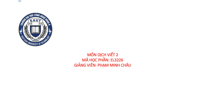 Học phần Dịch Viết 2 dành cho SV Ngôn Ngữ Anh.