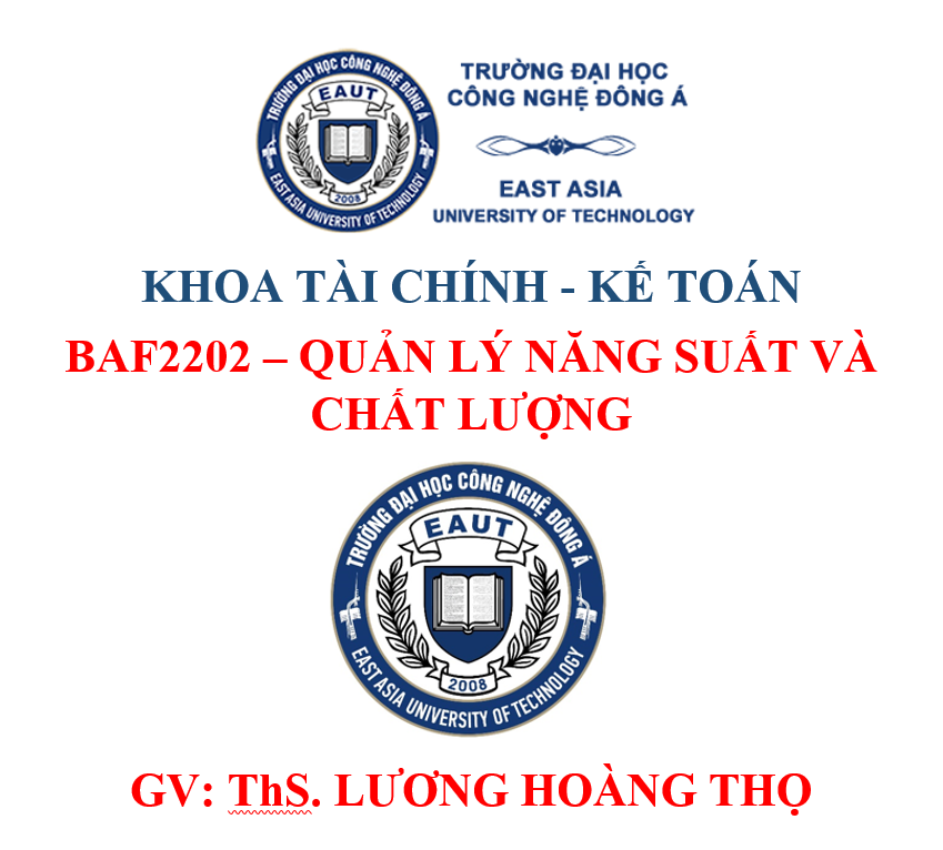 Học phần quản lý năng suất chất lượng là học phần thuộc khối kiến thức cơ sở ngành. Học phần cung cấp cho người học những kiến thức tổng quát về năng suất, chất lượng và quản lý năng suất chất lượng trên góc độ tài chính; giới thiệu cho người học về quản lý năng suất chất lượng, các chỉ tiêu đo lường và đánh giá năng suất chất lượng, một số hệ thống quản lý chất lượng và công cụ cải tiến năng suất nhằm gia tăng năng suất và chất lượng trong ngành Tài chính-Ngân hàng và ngành Kế toán.