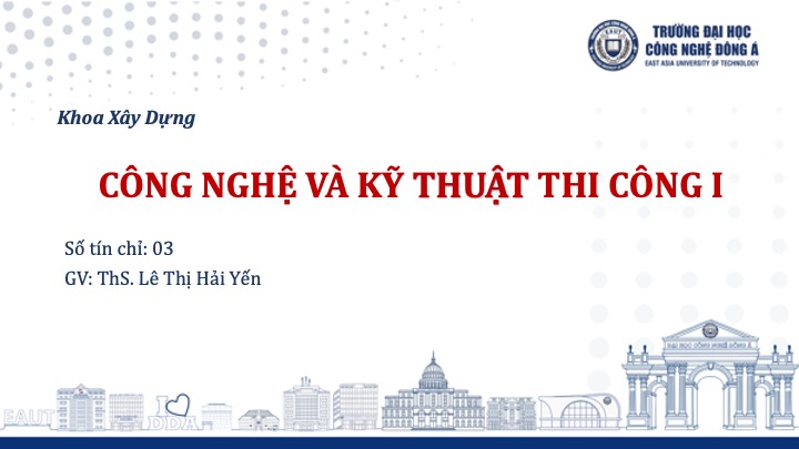 Học phần Công nghệ và kỹ thuật thi công 1 là học phần thuộc khối kiến thức chuyên ngành Kỹ thuật Xây dựng. Học phần giúp cho sinh viên hiểu và trình bày được nội dung các công tác thi công đất, cọc và cừ, công tác bê tông và bê tông cốt thép toàn khối; phân tích và chọn được công nghệ thi công tối ưu; tính toán khối lượng công tác đất, khối lượng công tác ván khuôn, cốt thép, bê tông; chọn được các loại máy phù hợp với công nghệ thi công; tổng hợp và đánh giá được hiệu quả kinh tế của các công nghệ thi công.