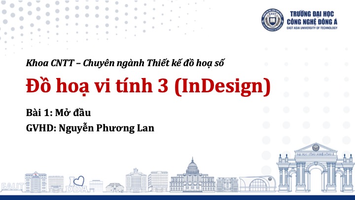 Học phần Đồ họa vi tính 3 (Indesign) cung cấp đến sinh viên chương trình phần mềm đồ họa Adobe InDesign dùng để thiết kế bìa, dàn trang tạp chí và sách. Học phần được xây dựng dựa trên các nội dung như: làm quen với InDesign; các công cụ trên thanh (Tool Box); làm việc với Layout; làm việc với văn bản; làm việc với màu sắc; làm việc với hình ảnh; cách lưu và xuất file. Sau khi học xong học phần này, sinh viên nắm được kiến thức về phần mềm thông qua các bài tập thực hành; giúp sinh viên nắm được kỹ năng, thực hành các thao tác thuần thục để có thể